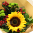 Букет из подсолнуха, хризантемы и хиперикума