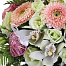 Композиция из роз, мини гербер, мини орхидей и лизиантуса — фото 2